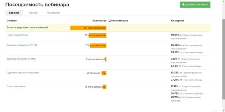 Настроила дашборд для аналитики заказов по автовебинарной воронке