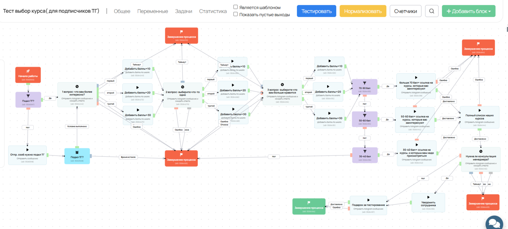 задаёт вопросы, и в зависимости от набранных баллов предлагает курсы