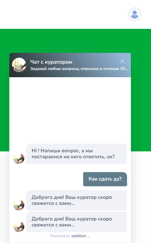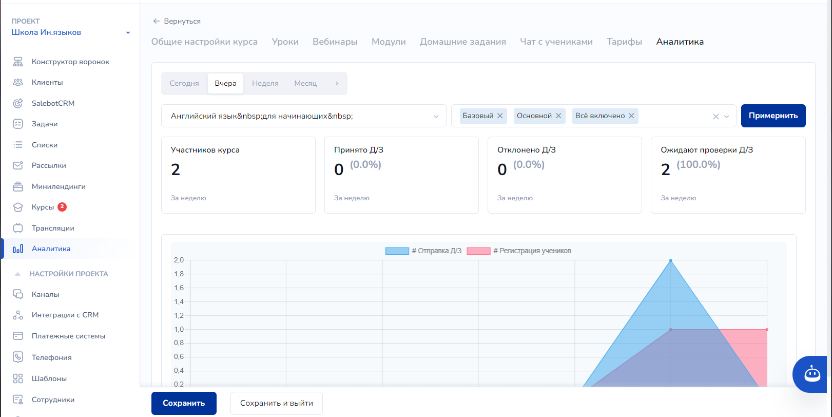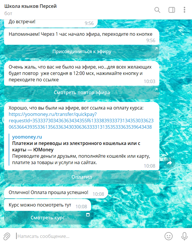3. Настроены приём и проверка домашних заданий 4.Для учеников создала чат с тех/поддержкой 5.Создала автовебинары 6.Создала и настроила чат-бот, который: